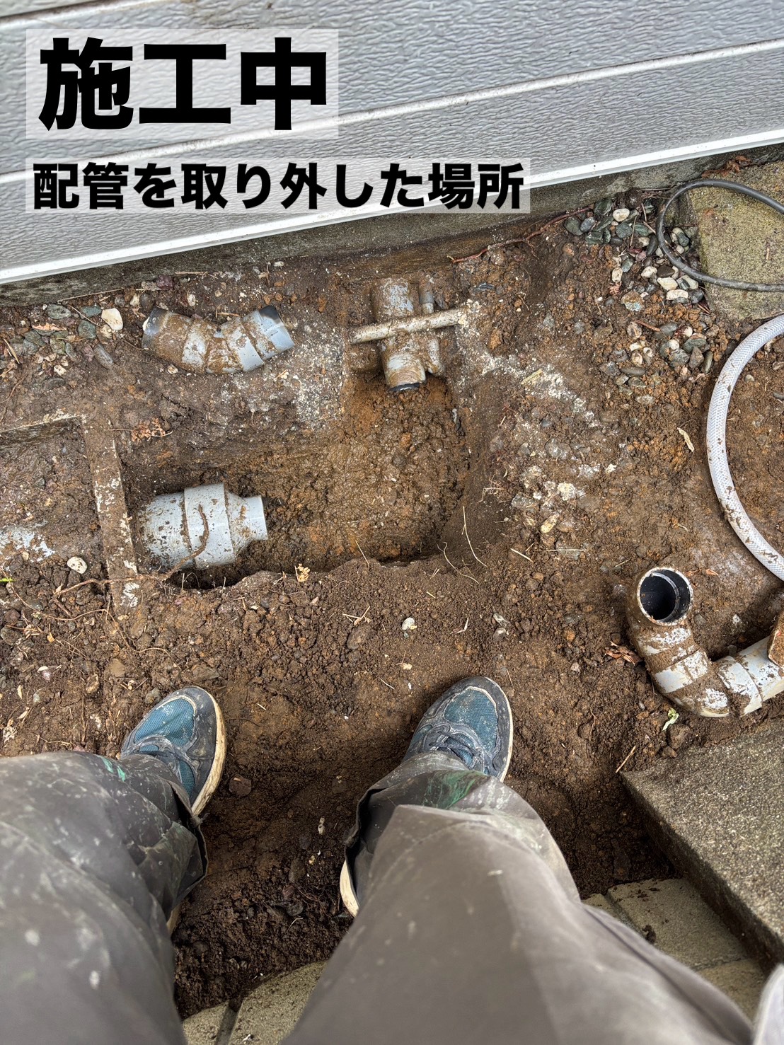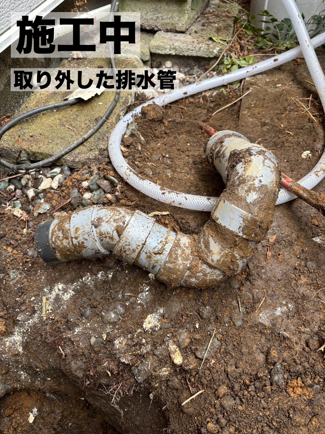 現地を確認したところ、経年劣化も見られたため、古い配管を撤去し新しい排水管へ交換しました。